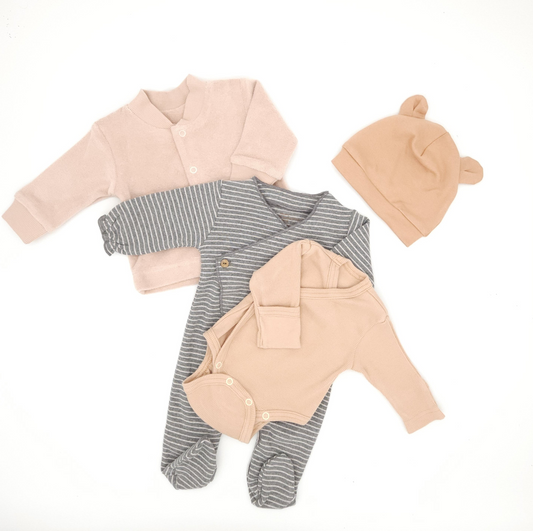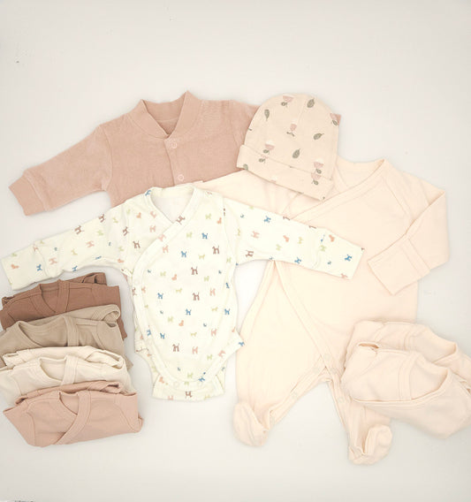 Préparer la garde-robe de bébé, c'est un casse-tête : combien de bodies, pyjamas, gilets, gigoteuses par taille ? Hiver ou été, on vous guide pour ne rien oublier (sans surconsommer...